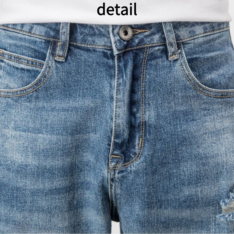The polyester fabric of these jeans is designed to last. It resists tearing, fading, and stretching, and stays fresh and bright even after repeated washings. It's perfect for men who want a stylish look without the hassle of taking care of their clothes, and is suitable for a variety of situations.