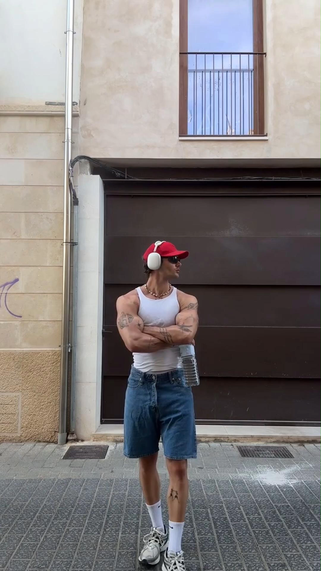 • Classic Americana: White tee + high-top sneakers