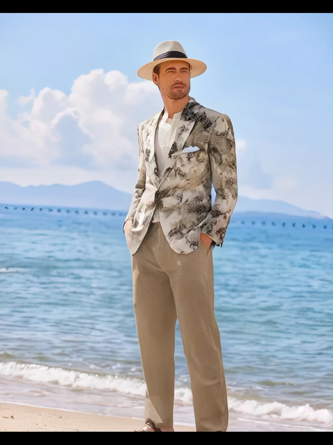 Bold Print: The striking wave camouflage design adds a unique twist to traditional tailoring, ensuring you stand out in any crowd.